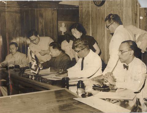 Mr.Lei Jen-Ming,China's and Mr.R.G.Senanayake, Signing the Ceylon China Trade Pact at the Prime Minister Office