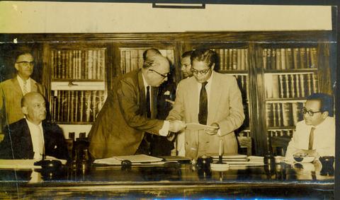 Dr.Theodor Auer the Ambassador of the Federal Republic of Germany and Mr.H.E.Tennekoon,Secretary to the Treasury Exchanging the Technical Aid Agreements Signed