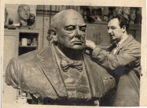 Mr. Vincent Apap, The Maltese Sculptor Puts The Finishing Touches to a Bronze Bust of Sir Winston Churchill