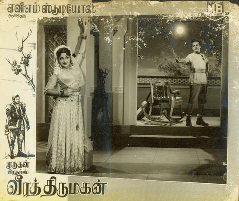 A Scene from Film "Veera Thirumagan" Anandan and E.V. Sarojini
