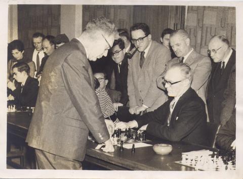 The World Chess Champion, Russia's 50 Years Old Mikhail Botvinnik, Playing a Simultaneous Exhibition Chess Match Against Twenty Opponents