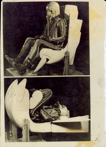 W.B. Harwell Manager of Production Flight for Convair, Division of Genaral Dynamics Corporation, Sits in Normal Flight Attitude