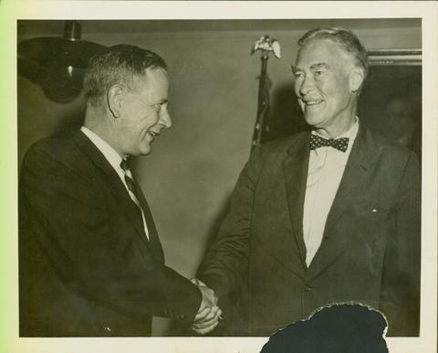 Mr.G.Lewis Jones,Assistant Secretary of State for near Eastern and South Affairs is Congratulated by Christian herter,Secretary of State after the Swearing Ceremony