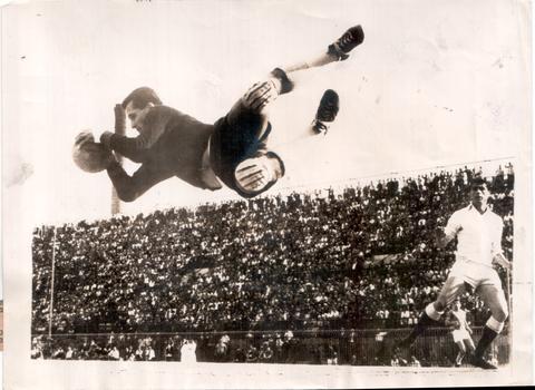 Valianos the Ethnikos Goalkeeper Making a Spectacular Save During the Match
