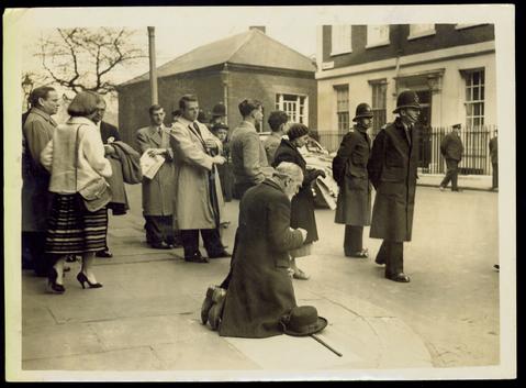 A Passer By Kneels Before No 10 Downing Street