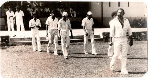 Elmo Rodrigopulle, Sports Editor, "Daily Miror"/"Sinday Times" and Captain of the Sri Lanka Pree XI Leading his side out to Field
