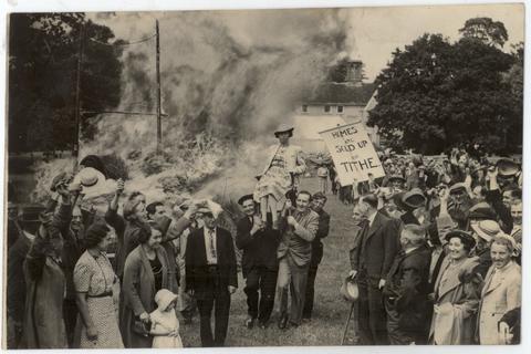 Mrs.R.H.Rash Being Carried by Supporters to the Bonfire Where the Tithes Act was Burnt After the Sale
