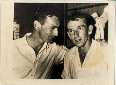 Australian Test Captain Brian Booth Pats Doug Walters on the Back After his Century Against England in the First Test at Brishane Recently. The Match Ended in a Drow