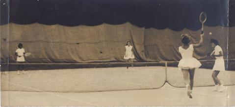 At Right Pidgeon Australia Scores With a Volley in The Doubles, Where She And S. Thompson Defeated L. De Saram And D. Corea in The Girl's Tennis Test Played on The CLTA Courts