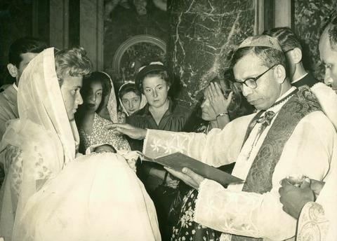 Roman Baptism Little Olga Fernando,Infant Daughter of Nelson Fernando of Air Ceylon,Rome Being Baptised by the Archbishop of Colombo,Dr.Thomas Cooray,OMI,at St.PETER's,Rome