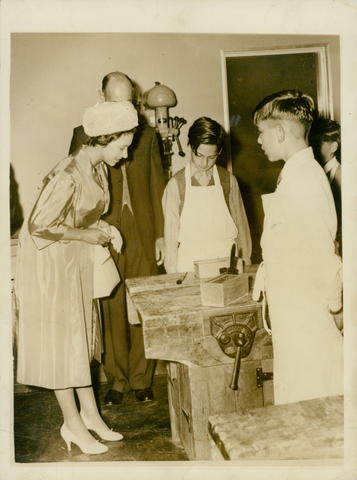 Deeply Sun-Tanned from her Carribean Honeymoon,Princess Margaret Inspects the Work of Colin Shelford