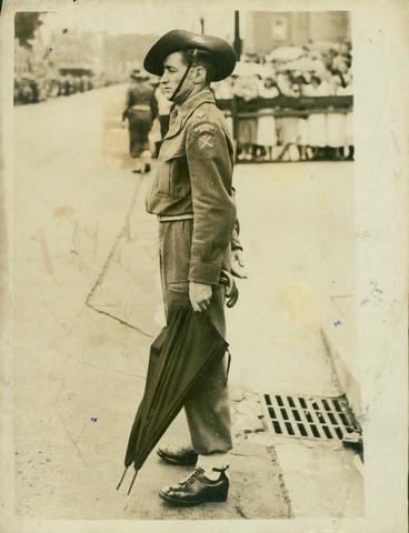 Ready for any Emergency is this Officer of the City of Newcastle Regiment,who is Waiting for the Arrival of the Queen and the Duke of Edinburgh in Newcastle Australia
