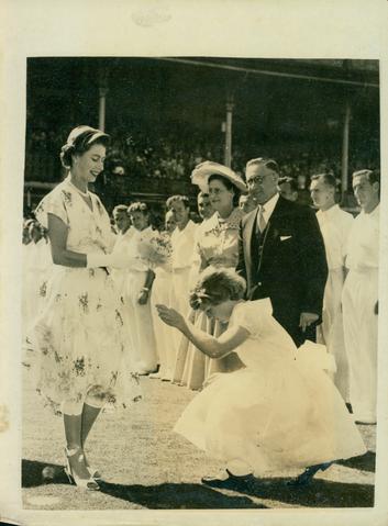 Brenda Nutimer,seen Curtesying after Presenting H.M.the Queen with a Bouquet at the Melboirne Cricket Ground
