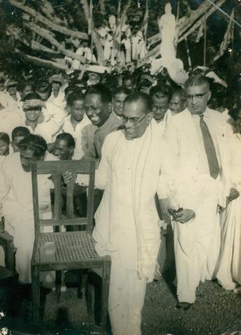 The Prime Minister Helping Himself to a Chair at the Ceremonial Renaming of Victoria Park to Viharamaha Devi Park Yesterday.