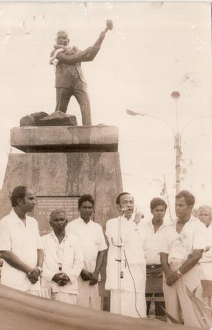 The Father of Labour Move Ment-Mr. A. E. Goonesinha Was Honoured Yesterday by his Statue in the Pettah Being Garlanded