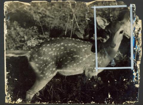A frightened fawn stares into the Camera lens in one of Ceylon's Natural Reserves