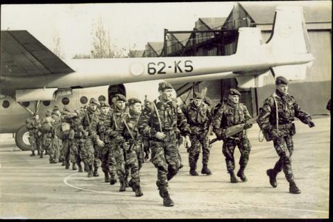 Picture Shows French Parachute Troops Leaving Their Noratlas Aircraft After Arriving at the RAF Station at Abingdon, Berkshire