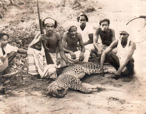 This 9 ft. Leopard was Shot Dead as It Tried to Sneak into the Premises Occupied by the Workman of the Gal Oya Development Board