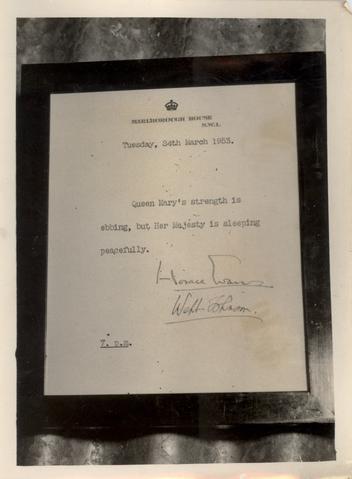 Queen Mary's Strength is Ebbing,but her Majesty is Sleeping Peacefully