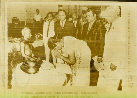 The Prime Minister, Mrs. Sirimavo Bandaranaike Presented a Two And a Half Lord Buddha on Behalf of The Government of Ceylon When She Visited The Sri Lankaramaya Temple Singapore