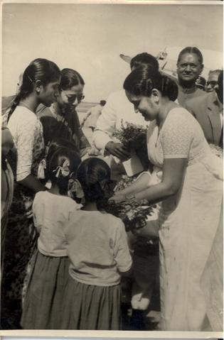 The Prime Minister of Ceylon, Mrs. Bandaranaike Who is on a Pilgrimage Tour of India, Arrived in From Bangalore at The Meenambakkam Air Port