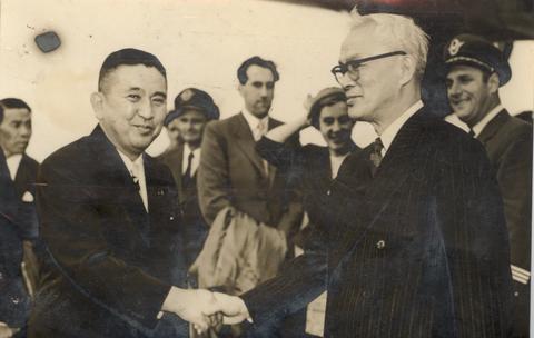 Mr.Ichoiro Kono,Japan's Minister of Agriculture who Arrived in U.K.for talks with Ministers greeted by Mr.H.Noahi,the Japanese Ambassador on his Arrival at London