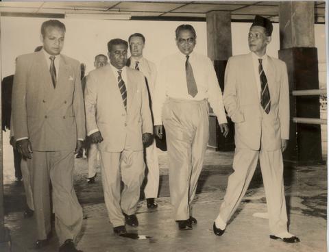 Tengku Abdul Rahman,Arrival at the Airport with Mr.Afired Edward,Mr.V.A.Sugathadasa,Mayor of Colombo and Mr.B.Zahiere-Lye,President of the All Ceylon Malay Association