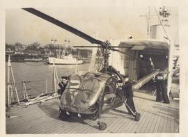 A HELICOPTER putting down a Citreen 5cwt