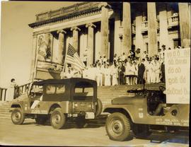 Mr.T.Ahambaram Chairman of the Trincomalee Urban Council Fixing a Number Plate with Tamil Letter on a Council's Lorry