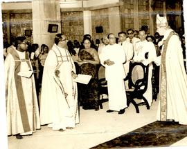 Rt.Rev.Cyril Abeynaike,Bishop of Colombo on the Extreme Right is the Rt.Rev.Rollo Graham Campbell Looking on from the Congregation are the President Mr. William Gopallawa and the Prime Minister Mrs.Sirimavo Bandaranaike
