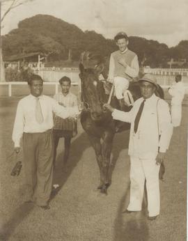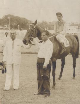 SELECT ALLOW,Winner of the Herbert Stanley Cup,being led in by his owner,Mr.Idroos Noordeen and trainer Walles after sucess at the Colombo yesterday