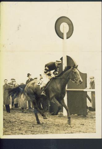 Jockey Freeman urges Mr. What past the winning post to win the 1958 Grand National at Aintree last Saturday.