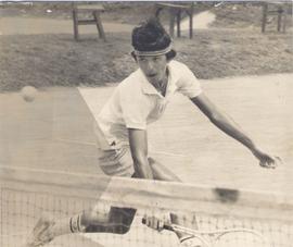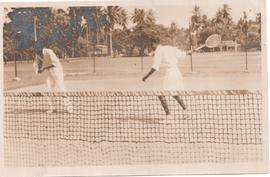 K.MeGREGOR And A. Bates of The Singapore Joint Services Are Caught Unawares as George Chandrasoma of Fort Tennis Club