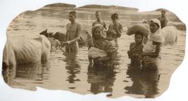 Villagers Voting in 1955 Elections Watch as Voter Who Cannot Write Puts Her Fingerprint on Ballot
