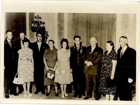Moscow, USSR: Seen at yesterday's reception given at the Grand Kremlin Palace here are members of Major Gherman Titov's family. Major Titov is pictured fourth from right, with his wife, Tamara and Soviet Premier Nikita Krushchev (third from right).