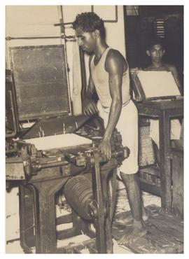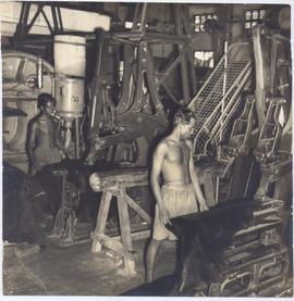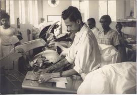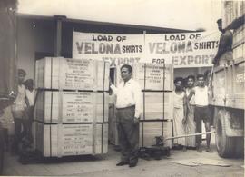 At their machines turning out shirt