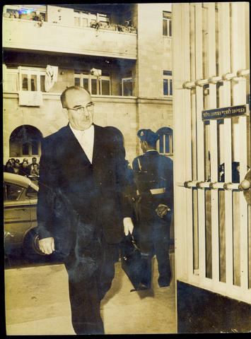 Levi Eshkol — The Minister of Finance, pictured here entering the Knesset (Israeli Parliament).