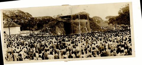 Here is a view of the large crowd that attended the ceremony at Mahiyangana yesterday. In the background is the "chetiya". (Times)