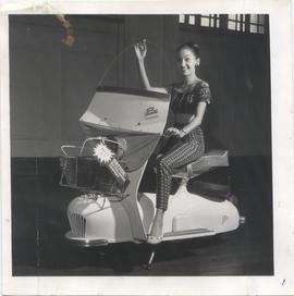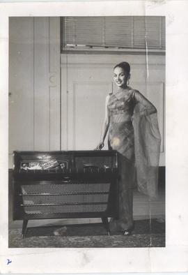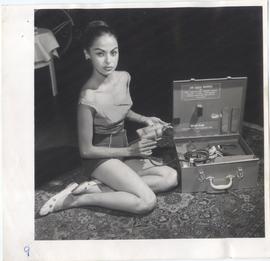 The Dettol Girl Displays anther of the attractive Prizes Offered in the Biggest-Ever Gift Competition to be Held in Ceylon- the “ Dettol-in-the- Home” Competition