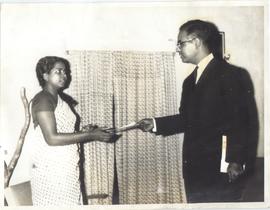 Dr. Hensman of Messrs, Hensco Pharmacy and Agencies, Wellawatte, Receiving the First Prize Which he Won at a Shelltox Dealer Contest Conducted a Few Months Ago