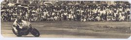 Zacky Deen on His Norton Manx Negotiating the Goose Neck Bend With Mirando Hot on His Tail Astride a Honda Sports at the CMSC Meet at Katukurunda