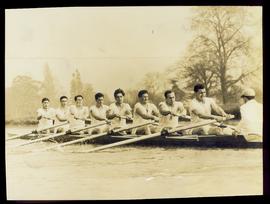 This is the Triumphant Crew of Cambridge who Beat Oxford Yesterday by one and Quarter Lengths in a Time Of 18 Minutes 36 Seconds