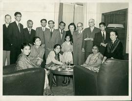 MR.H.A.J.Hulugalle.In the Picture (left to Right) are: Mr.R.Rao,the Indian Ambassador,Mr.Sherman the Financial Adviser of the Liberian Government,Mrs.R.Rao,Mr.Hulugalle,Mr Nelson Fernando,Secretary to the Ceylon Minister in ROME,and Mr.T Somervell of the Liberian Government
