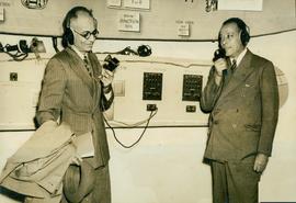Members of the Imperial Press Conference Paid a Visit to the Raf Establishment at Farnborough.Picture Shows Mr.H.J.Hulugalle (left),of Ceylon,and Mr.C.A.Eale(Barbadoes)Listening-in on Airborne Intercommunications