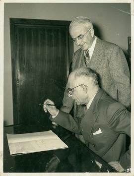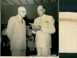 Rome,Italy,27 February 1956-Mr.Herbert A.Jayatilleke Hulugalle,Minister For Ceylon.Standing,Dr.P.V.Cardon,Director General of the Food and Agriculture Oragnisation of the United Nations