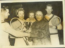 Mrs. Bevin Presents Trophy to Double Winners