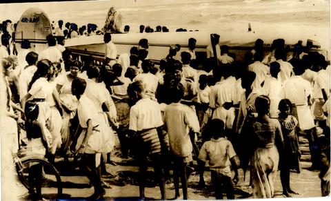 Crowds gather around the Beachcraft aircraft which crashed on the beach bordering the Angulana cemetery yesterday afternoon just after it had taken off from Ratmalana.