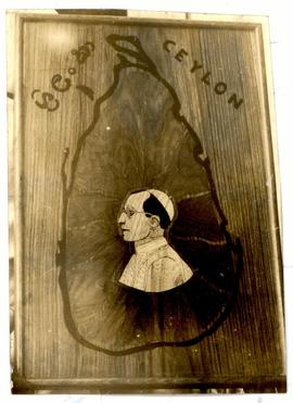 A Wood Engraving of The Map of Ceylon With The Bust of Pope Pius XII in The Centre Was Presented by Mr. B. T. Fernando, Leading Shipwright in The Royal Ceylon Navy