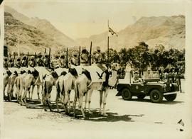 One Knee on a Chair,Seiyid Bubakr Bin Sheikh Al Kaf,Councillor of the Kathiri State in Eastern Aden,Receives the Accolade from Queen Elizabeth at an Ope Air Investiture in Public