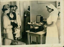 H.M.the Queen Interested in the Weighing of a 15 Week Old Baby During her visit to Karzitane Hospital.Anderson's Bay Dunedin During the New Zealand